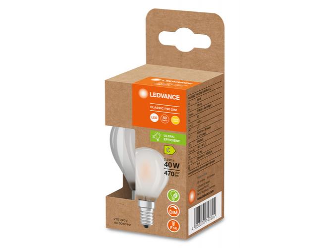 Szabályozható LED lámpák, klasszikus miniégő forma, C energiahatékonysági osztály. Termékjellemzők: vonalas feszültséghez való LED lámpák. Nagyon magas hatékonyság, akár 162 lm/W-ig. Sugárzási szög: akár 300°. Nagyon hosszú élettartam, akár 50 000 óráig. Nagyon magas kapcsolási ciklusok száma: 500 000. Szabályozható. Termék előnyei: "filament" technológiával készült LED lámpák. Nagyon alacsony energiafogyasztás. Design, méretek, fényáram hasonló egy halogén lámpához. Azonnali 100% fény, nincs bemelegedési idő. Alacsony villogás. Felhasználási területek: Tökéletes dekoratív telepítésekhez. Háztartási alkalmazások. Általános világítás. Kültéri használatra csak kültéri lámpatestekben (minimum IP65).