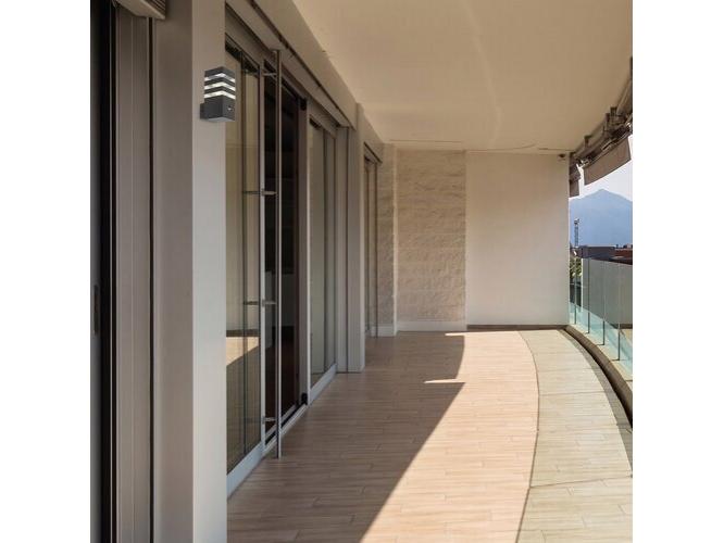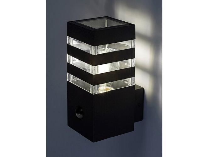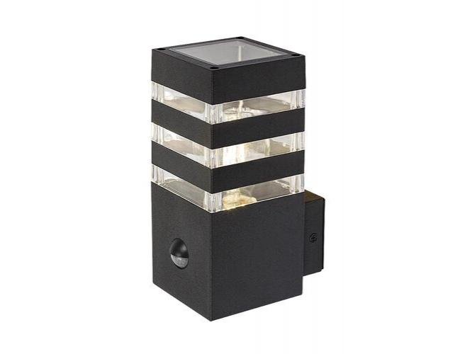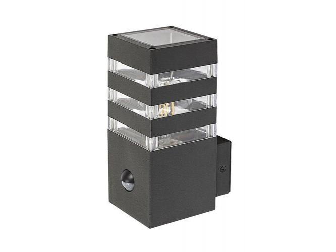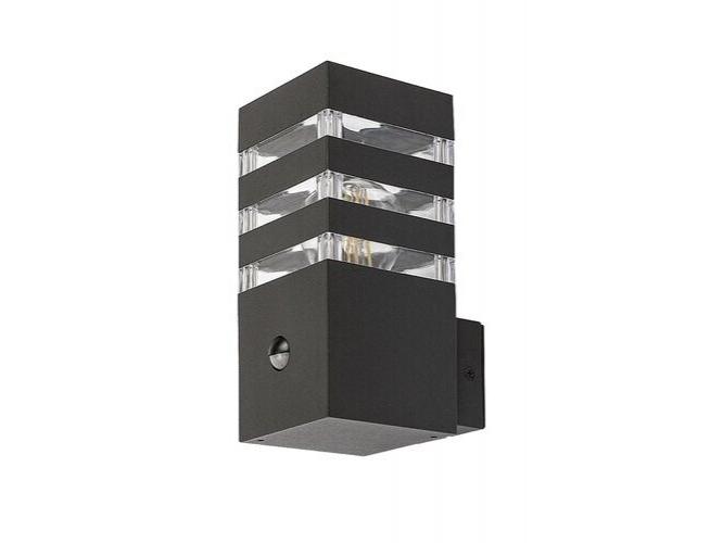 A modern stílusú Ankara kültéri mozgásérzékelős fali lámpa jó választás lehet mind a teraszra, mind a ház külső falára, például a bejárathoz vezető gyalogút megvilágítására. Az alumíniumból készült antracitszürke lámpatestet sávosan előtűnő átlátszó műanyagbúra egészíti ki, ami izgalmas megvilágítást biztosít. A lámpa az alsó részéből hátrafelé kinyúló elem segítségével rögzíthető a falon. Az Ankara egy darab legfeljebb 12 W teljesítményű fényforrással használható, a foglalat típusa E27. Az intelligens szenzor, amely a lámpa fényerejét a körülményeknek megfelelően változtatja, 6-8 méter távolságból, 105°-os látószögben érzékeli a mozgást. A kültéri lámpa méretei a következők: szélessége 90 mm, magassága 200 mm, faltól mért távolsága 135 mm. A lámpa IP44-es védettsége garantálja, hogy legfeljebb 1 mm átmérőjű tárgyak behatolása ellen, valamint bármilyen irányból fröccsenő víz ellen védett. Az Ankara kültéri mozgásérzékelős fali lámpát fényforrás nélkül szállítjuk.