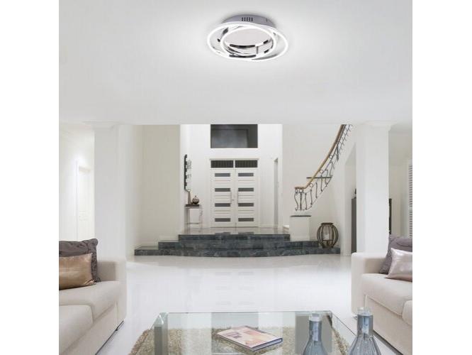 A Selena mennyezeti lámpa látványos darabja lehet modern nappalink berendezésének. A fémből készült, króm színű lámpát egyedi dizájn jellemzi, a kerek formák szabálytalan elrendezése teszi különlegessé. A mennyezeti lámpa energiatakarékos, beépített LED fényforrással rendelkezik. A beépített LED fényforrás energiafogyasztása 30 W, fényereje 2400 lumen, élettartama 20 000 óra. A lámpa színhőmérséklete 4000 K, azaz természetes fehér fénnyel világítja meg az adott helyiséget. A kerek lámpa átmérője 370 mm, mennyezettől való távolsága 80 mm. A Selena mennyezeti lámpára 5 év garanciát vállalunk.