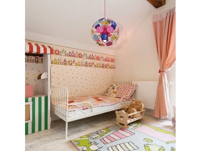 A Birdy függeszték vidám színeivel és bájos madárfiguráival bármely gyerekszoba berendezésének csodás darabja lehet. A madaras-fás motívumoknak köszönhetően kerülhet akár kislány, akár kisfiú szobájába, garantáltan sikert arat. A fémből és műanyagból készült lámpa gömböt formáz, a kis, színes baglyok pedig három darab E14-es foglalatot rejtenek. A pink alapszínben pompázó és ugyanilyen színű dísztalppal szerelt Birdy három darab, egyenként legfeljebb 40 W teljesítményű fényforrással használható. Amennyiben otthonos, meghitt hangulatot szeretnénk teremteni, válasszunk hozzá meleg fehér fényű fényforrásokat, ha azonban tiszta, modern hatásra vágyunk, természetes fehér fénnyel világító fényforrásokat szereljünk be. A bájos függeszték átmérője 420 mm, belógása 1200 mm. A Birdy lámpát fényforrások nélkül szállítjuk.