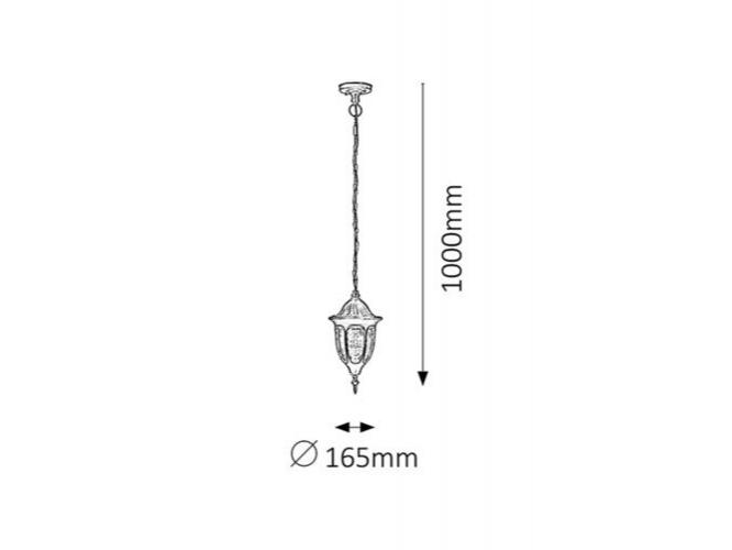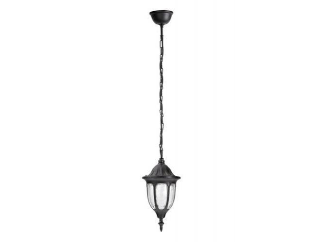 Klasszikus megjelenésű kültéri függeszték 1 db foglalattal. 100 cm lelógású, 16,5 cm átmérőjű, fekete színű, fémből készített lámpatest és üvegbúra, IP43-as védettséggel. A lámpatest E27-es foglalatú, max. 60W teljesítményű fényforrással használható.