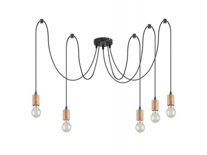 Az indusztriális stílusú Dollien ötös függesztéket azoknak ajánljuk, akik kedvelik a sallangmentes, ugyanakkor kreatív világítási megoldásokat. Ez a modell számos modern nappali berendezésének jellegzetes darabja lehet. A fémből készült Dollien a matt feketét kombinálja a természetes bükk színnel, a fényforrások szabadon csüngenek a kábelek végén. A függeszték kisméretű kerek dísztalp segítségével rögzíthető a mennyezetre, és öt darab, egyenként legfeljebb 60 W teljesítményű fényforrással használható. A foglalatok típusa E27. Ehhez a modellhez leginkább természetes fehér fényű fényforrások illenek, amelyek tiszta, modern hatást keltenek a nappaliban, otthonunk nagy forgalmú helyiségében. Mivel a fényforrásokat nem takarja búra, érdemes a lámpát a megszokottól eltérő formájú, esztétikus izzókkal használni. A Dollien ötös függeszték méretei a következők: egy-egy búra átmérője 45 mm, a lámpa belógása 2100 mm, a beépítési átmérő 120 mm. Ezt a modellt fényforrások nélkül szállítjuk.
