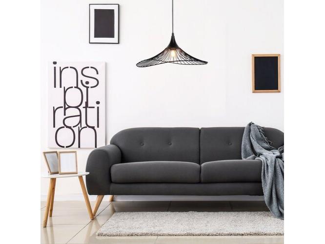 Az indusztriális stílusú Sombero függeszték egyedi formatervezésének köszönhetően modern nappalink vagy étkezőnk jellegzetes darabja lehet. A teljes egészében fémből készült matt fekete modellt légies vonalvezetésű, rácsos búra egészíti ki, amely leginkább egy nagyméretű, elegáns női kalapra emlékeztet. A lámpa kisméretű kerek dísztalp segítségével rögzíthető a mennyezetre. A Sombero egy darab legfeljebb 60 W teljesítményű fényforrással használható, a foglalat típusa E27. Mivel a fényforrást nem takarja hagyományos értelemben vett búra, érdemes ezt a lámpát a megszokottól eltérő formájú, esztétikus izzóval használni. A Sombero függesztékhez természetes fehér fényű fényforrást ajánlunk, amely modern, tiszta hatásával ideális választás otthonunk nagy forgalmú helyiségeibe. A lámpa méretei a következők: átmérője 500 mm, belógása 1500 mm, beépítési átmérője 100 mm. Ezt a modellt fényforrás nélkül szállítjuk.