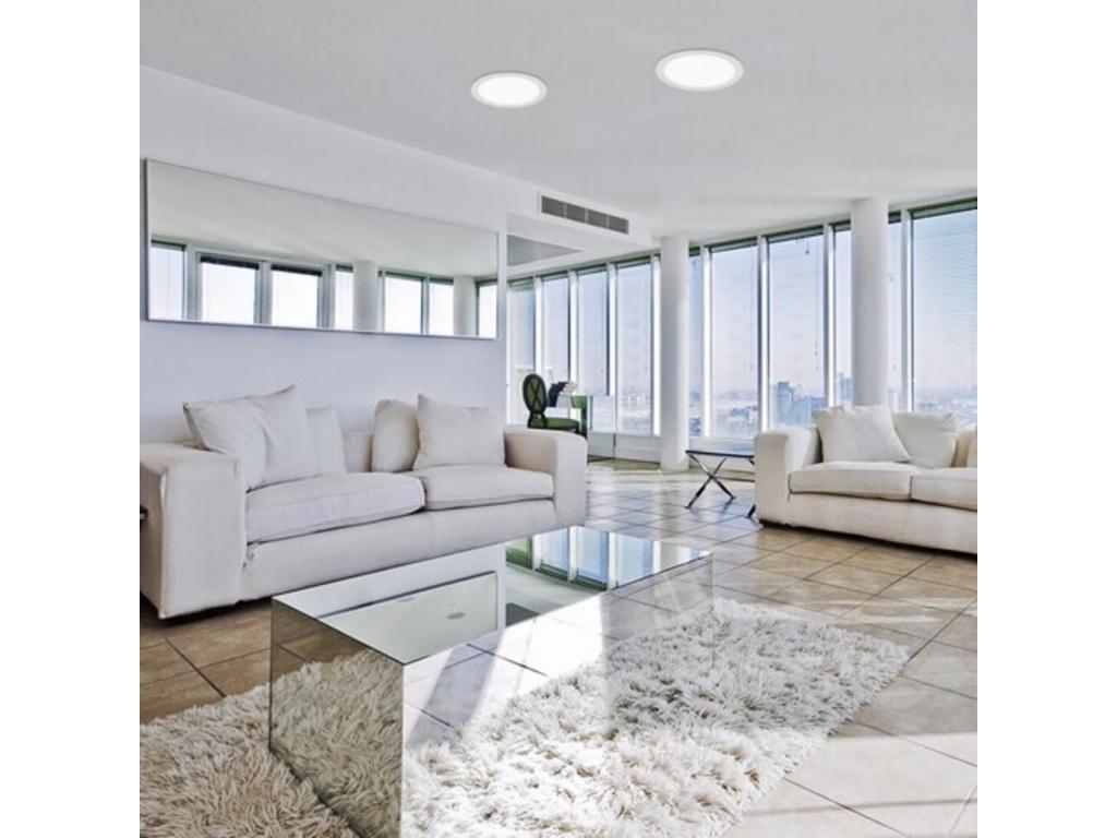 A minimál stílusú, beépíthető Shaun 2 mennyezeti lámpát elsősorban modern nappalikba, étkezőkbe, konyhákba és dolgozószobákba ajánljuk. A fehér színű, kerek modell teljes egészében műanyagból készül, és letisztult megjelenésének, valamint a mennyezetbe süllyeszthető kivitelnek köszönhetően szinte észrevétlenül simul bele a szoba berendezésébe. A Shaun 2 a G energiaosztályba tartozó, beépített LED fényforrással rendelkezik, amelynek teljesítménye 18 W, fényereje búrával 1220 lumen, búra nélkül 1800 lumen. A 3000 K színhőmérsékletű fényforrás élettartama 25 000 óra. A meleg fehér fénnyel világító Shaun 2 mennyezeti lámpa segítségével meghitt, otthonos hangulatot teremthetünk. Ez a modell kisebb helyiségekben önmagában is megállja a helyét, de egy tágasabb szobában tetszés szerint többet is felszerelhetünk belőle. A beépíthető mennyezeti lámpa méretei a következők: átmérője 220 mm, mennyezettől mért távolsága 3 mm, beépítési átmérője 165 mm, beépítési mélysége 25 mm.