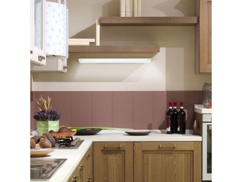 A műszaki stílusú Easylight 2 pultmegvilágító lámpa praktikus és helytakarékos világítási megoldást kínál bármely modern konyhába. A munkapult fölé szerelve a természetes fehér fényt sugárzó modell az ételek előkészítése, a főzés és a mosogatás során is hatékonyan segíti a konyhában tevékenykedőket. Méreténél és fényerejénél fogva az Easylight 2 nagyobb munkapult esetén is jó választás. Az alumíniumból készült, fehér színű lámpatestet fehér műanyagbúra egészíti ki, amely alatt a G energiaosztályba tartozó beépített LED fényforrás helyezkedik el. A fényforrás teljesítménye 15 W, fényereje búrával 1150 lumen, búra nélkül 1340 lumen, élettartama pedig 25 000 óra. A 4000 K színhőmérsékletű fényforrás természetes fehér fényével modern, tiszta hatást biztosít, és ideális a konyhai műveletek elvégzéséhez. A billenőkapcsolóval szerelt Easylight 2 pultmegvilágító lámpa méretei a következők: szélessége 910 mm, magassága 30 mm, faltól mért távolsága 80 mm, a kábel hossza 1800 mm.