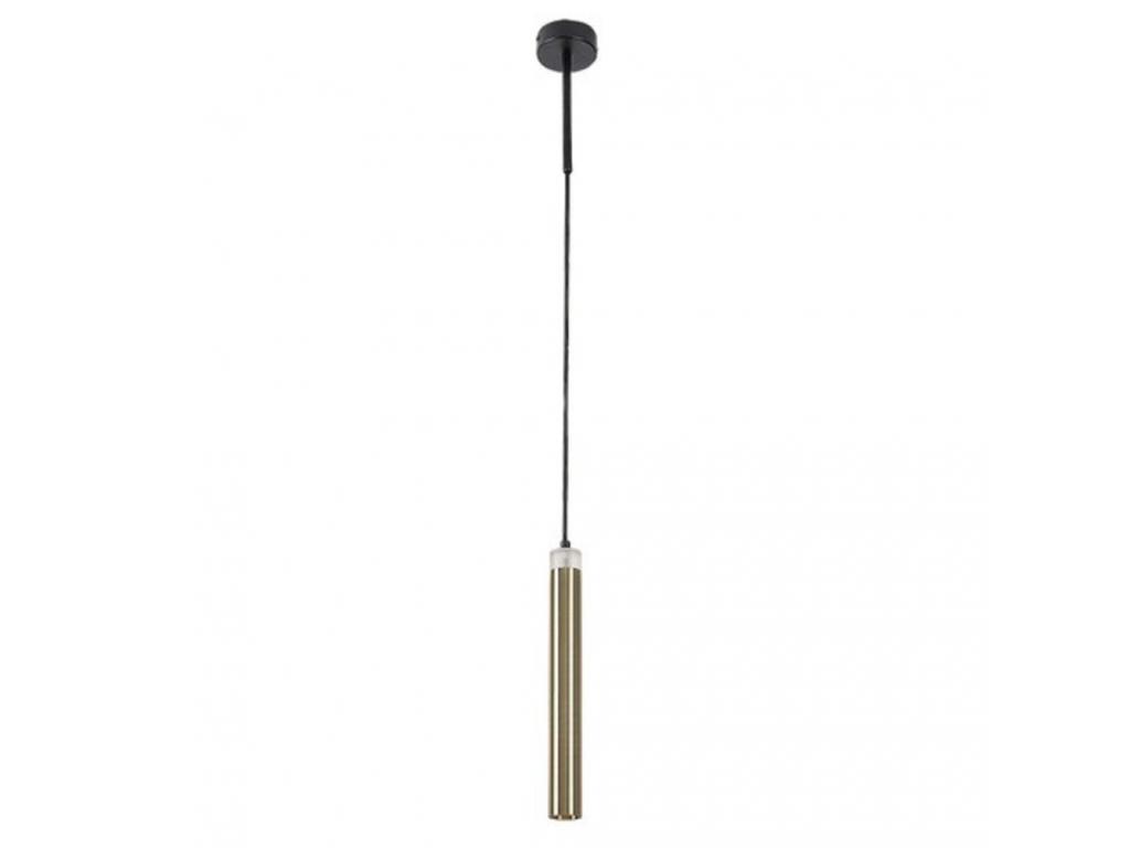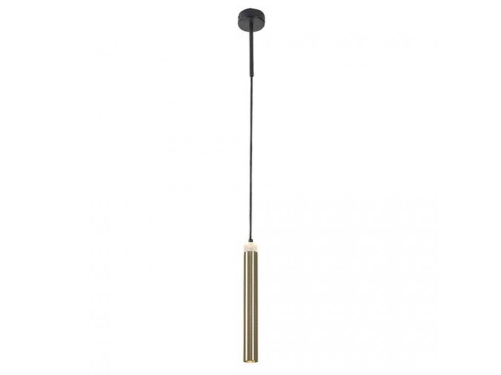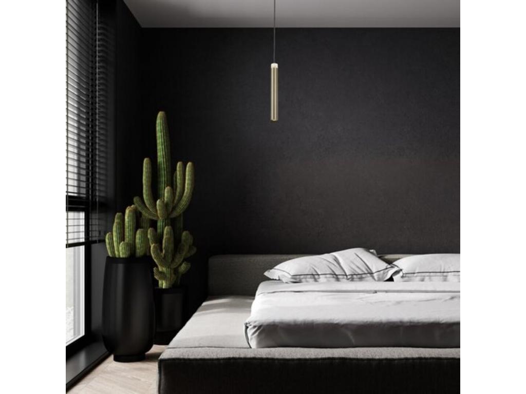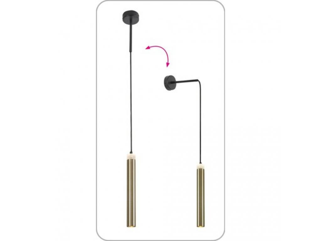 A minimál stílusú Thelma függeszték jó választás lehet a nappaliba, az étkezőbe vagy a hálószobába. A fémből készült, fekete modellt kis átmérőjű, hengeres, aranyszínű akrilbúra és kerek, fekete dísztalp egészíti ki. A Thelma különlegessége, hogy a textilkábel nem közvetlenül a dísztalphoz kapcsolódik, hanem egy merev összekötő elemhez, amelynek köszönhetően a dísztalpat nemcsak a mennyezetre, de a falra is szerelhetjük. Utóbbi esetben a merev rész vízszintesen nyúlik ki a dísztalpból, ezáltal csökkentve a lámpa belógását. A Thelma a G energiaosztályba tartozó, beépített LED fényforrással rendelkezik, amelynek teljesítménye 10 W, fényereje búrával 620 lumen, búra nélkül 950 lumen, élettartama 30 000 óra. A 4000 K színhőmérsékletű fényforrás természetes fehér fénnyel világít. Ez a típusú fény ideális otthonunk nagy forgalmú helyiségeibe, hiszen modern, tiszta hatást kelt. A függő lámpa átmérője 40 mm, beépítési átmérője 80 mm, belógása 1700 mm, a lámpafej magassága 325 mm.