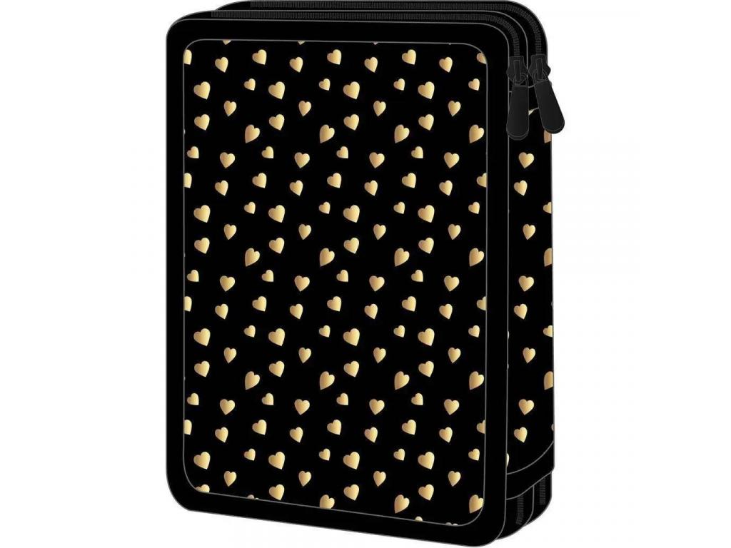 Elegancia és praktikum találkozik a Luna: Must 2 rekeszes töltött tolltartó Butterfly Hearts változatában, amely stílusos megjelenésével és teljes felszereltségével tökéletes választás minden divatrajongó iskolás számára. A fekete alapon csillogó arany szívecskék modern, letisztult dizájnt alkotnak, így ez a tolltartó nemcsak egy praktikus iskolai eszköz, hanem egy divatos kiegészítő is egyben.