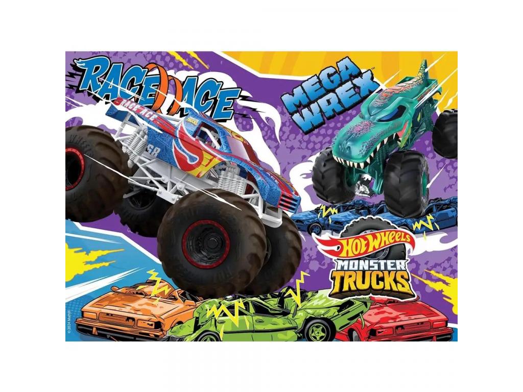 Ha gyermeked rajong a száguldó óriásjárgányokért, a Hot Wheels Monster Trucks: Race Ace vs. Mega Wrex 48 darabos puzzle biztosan lenyűgözi majd! A Lisciani különleges kirakója 4 éves kortól ajánlott, és tökéletes választás azoknak a kisgyerekeknek, akik már bátran belevágnának egy kicsit nagyobb kihívást jelentő puzzle-be. A 35 x 25 cm-es kirakó izgalmas jelenetet ábrázol: a színes háttér előtt két ikonikus Monster Truck, a vagány Race Ace és a félelmetes Mega Wrex csap össze egy látványos roncsderbin.