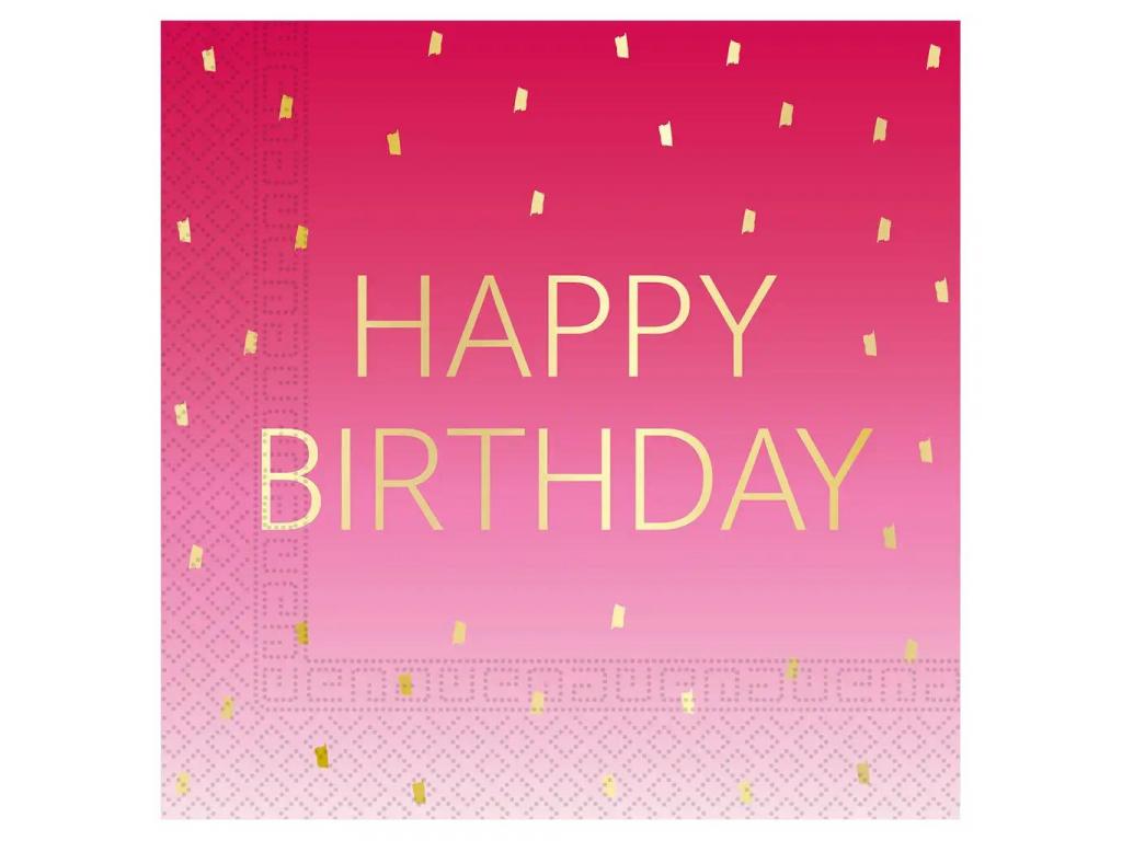 Rózsaszín színű szülinapi Happy Birthday feliratú 2 rétegű papírszalvéta 20db-os csomag