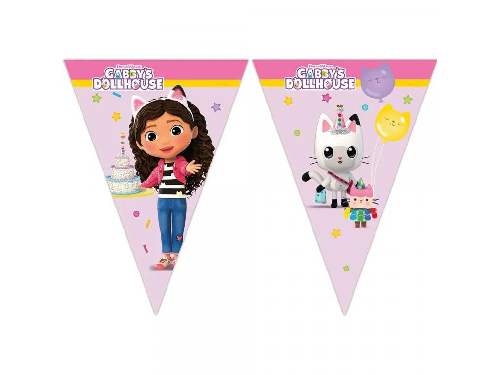 Varázsold ünnepivé a szülinapi dekorációt a Gabi babaháza party zászlófüzérrel! Ez a színes, kedves mintás zászlófüzér tökéletes választás, ha a kislányod vagy kis vendégei rajonganak a népszerű DreamWorks sorozatért. A füzéren Gabi és barátai köztük Pandy Paws, Kitty Fairy és sok más kedvenc figura köszön vissza, vidám lufikkal, szülinapi tortával és ajándékokkal kiegészítve. A háttér finom rózsaszín árnyalata remekül illeszkedik a többi Gabi babaháza dekorációhoz.