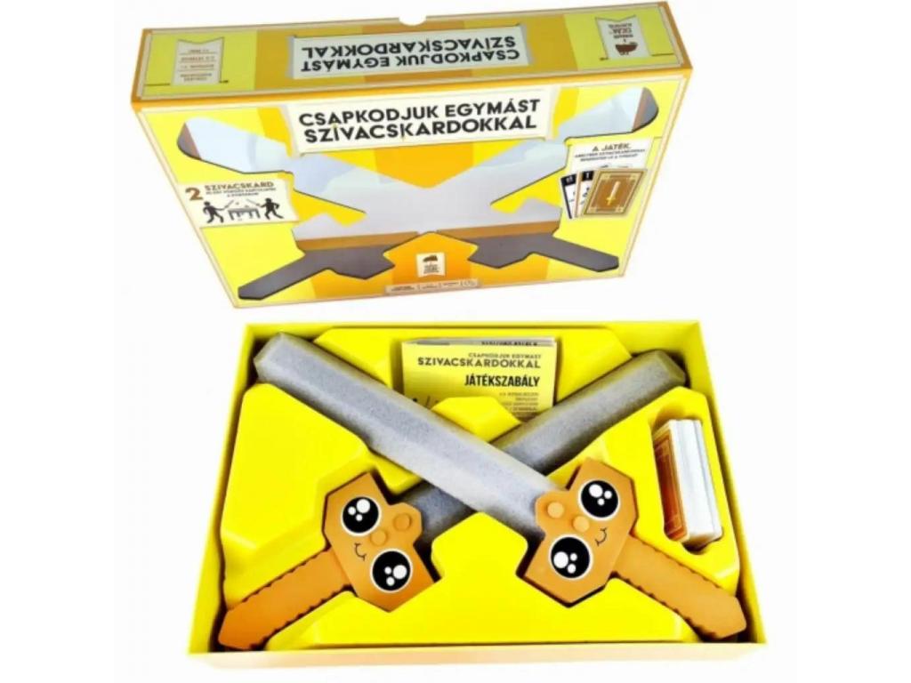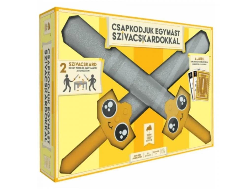 A Csapkodjuk egymást szivacskardokkal társasjáték garantáltan feldobja bármelyik családi vagy baráti összejövetelt! Ebben az őrülten vicces partijátékban a játékosok nem csak kártyákat gyűjtögetnek, hanem szó szerint meg is küzdenek értük méghozzá puha, biztonságos szivacskardokkal. A játékmenet során három kártyaszettet kell összegyűjteni, de ha két játékos ugyanarra pályázik, párbaj következik, különféle mókás szabályokkal: egyensúlyozás, meghajlás, vicces mozdulatok és még sok más. A kardozás során nemcsak ügyesség, hanem kreativitás és humor is előnyt jelent.