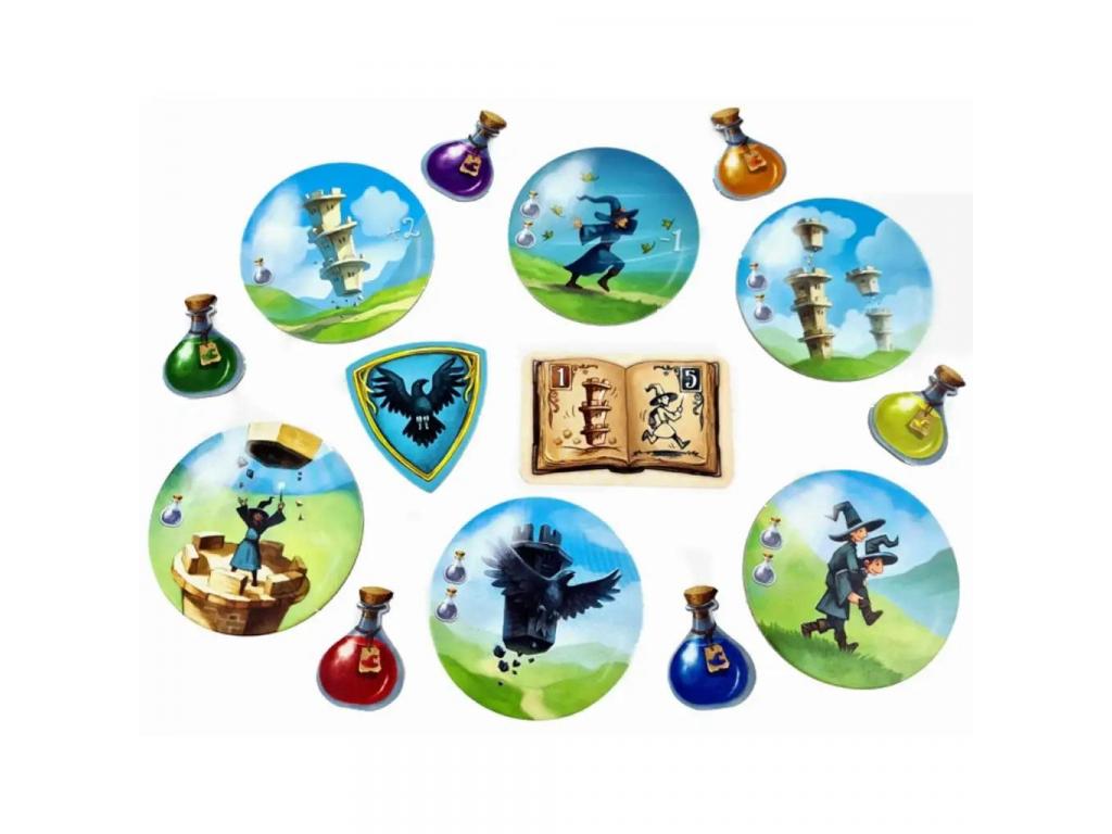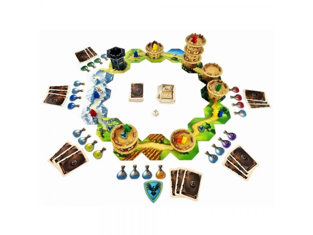 Ez a különleges, könnyen tanulható játék rengeteg vidám pillanatot kínál az egész családnak. A játékosok felváltva mozgatják a saját varázslóikat és a tornyokat is, amelyek alatt akár más játékosok karakterei is elbújhatnak sőt, el is tűnhetnek egy ideig a varázslatos rejtekhelyen! A játék folyamatosan változó táblája miatt soha nem lehet tudni, ki lesz a következő, aki egy ügyes húzással az élre tör.