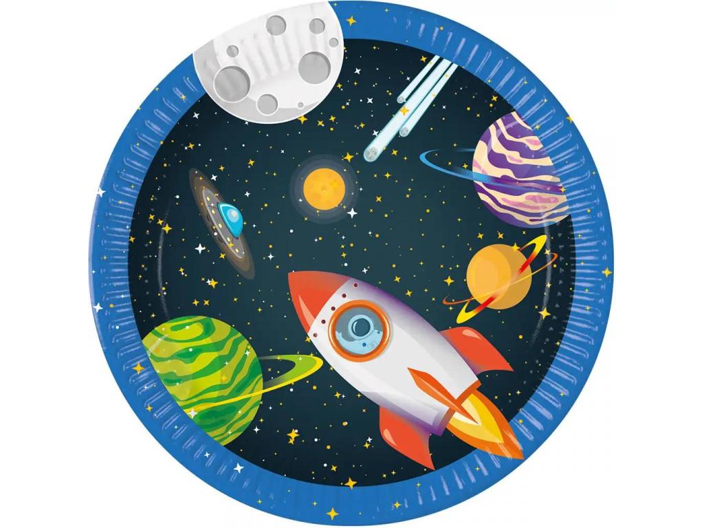 űrkaland papírtányér bolygós és rakétás mintával 8db-os szett