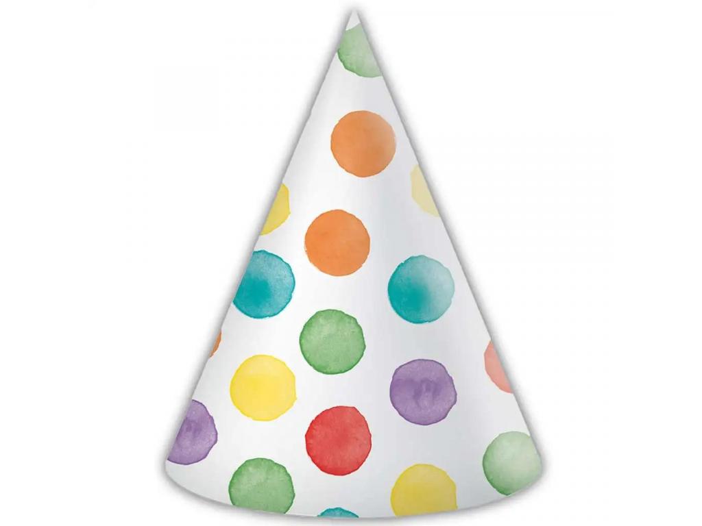 Vidám, színes és garantáltan mosolyt csal minden gyerek arcára ez a színes pöttyös party kalap szett minden szülinapi zsúr elengedhetetlen kelléke! A klasszikus kúp alakú kalapok élénk akvarell hatású pöttyökkel díszítettek, melyek igazán játékossá és szerethetővé teszik őket. A szett 6 darab kalapot tartalmaz, így egy kis baráti társaság vagy az egész család egyszerre ünnepelhet stílusosan.