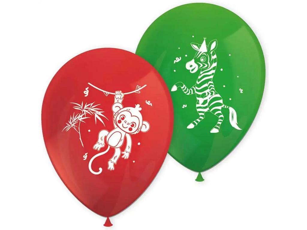 Ha igazán hangulatos dzsungel témájú bulit szeretnél a gyerkőcödnek, akkor ezek a vidám állatos lufik kihagyhatatlan dekorációs elemek! A 8 darabos szett kétféle mintát tartalmaz: piros lufin egy kedvesen mosolygó majom lóg a liánon, míg a zöld lufin egy ünneplő zebrát láthatsz, partykalappal a fején. A fehér kontúros rajzok szuperül mutatnak a színes háttéren, és remekül passzolnak a dzsungeles dekorációkhoz.