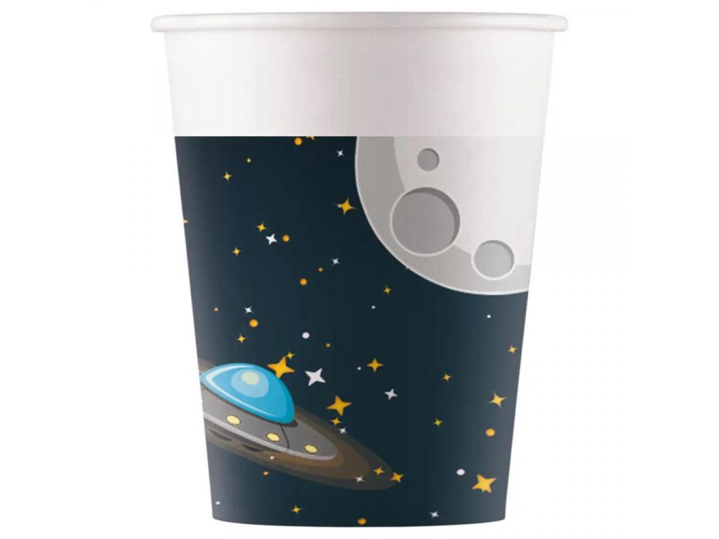űrkaland papírpohár hold és csészealj mintával 8db-os szett 200ml
