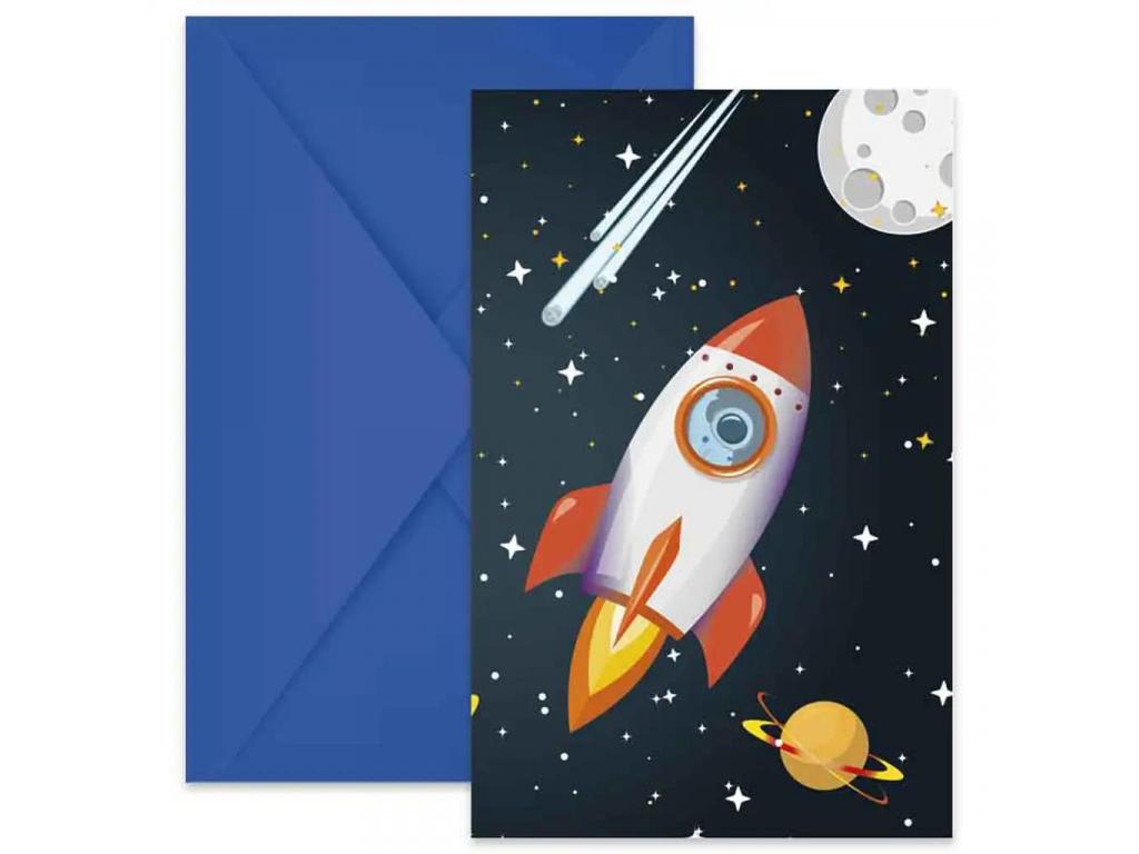 A csomag 6 darab meghívót és hozzá illő borítékot tartalmaz, így tökéletes kisebb születésnapi partikhoz vagy ovis baráti kör meghívására. Ha több gyerkőcöt szeretnél meghívni, csak szerezz be több csomagot és már indulhat is a csillagközi buli.