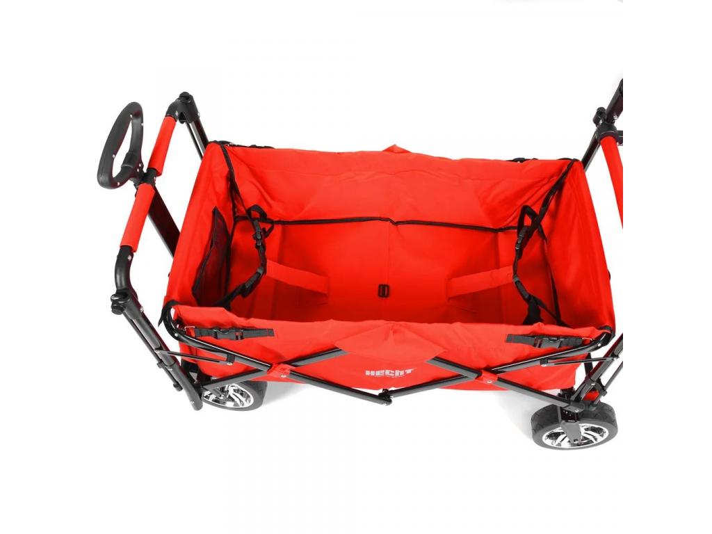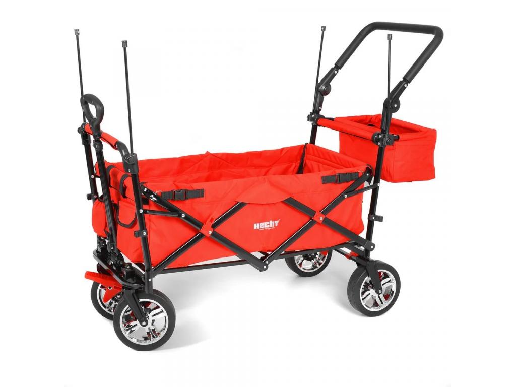 A HECHT 50006 szabadidős kézikocsi ideális megoldás azoknak a szülőknek és családoknak, akik a szabadban szeretnének időt tölteni gyermekeikkel. A robusztus porszórt acélszerkezetnek és a tartós poliészter borításnak köszönhetően a kocsi nem csak erős, hanem könnyű és könnyen szállítható is. Akár 80 kg-os teherbírásával gyerekek és játékaik befogadására is alkalmas, két biztonsági övnek és első fékeknek köszönhetően pedig maximális biztonságot garantál a szállítás során.