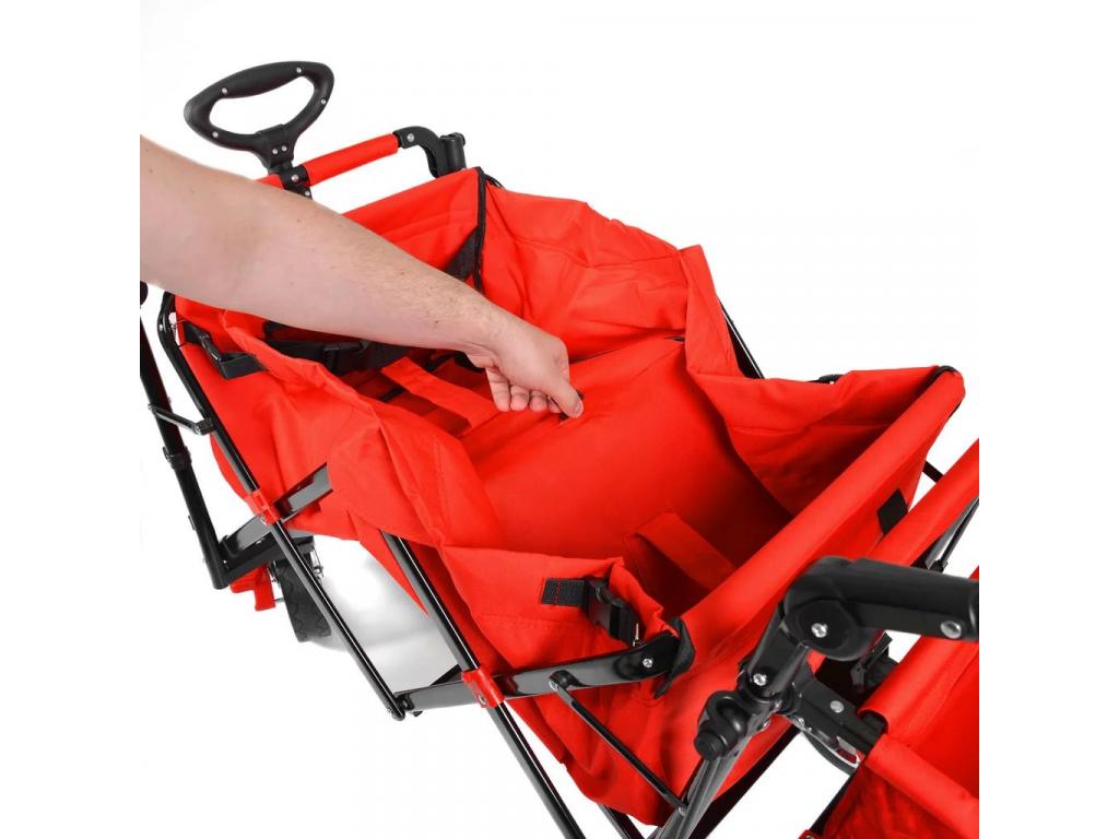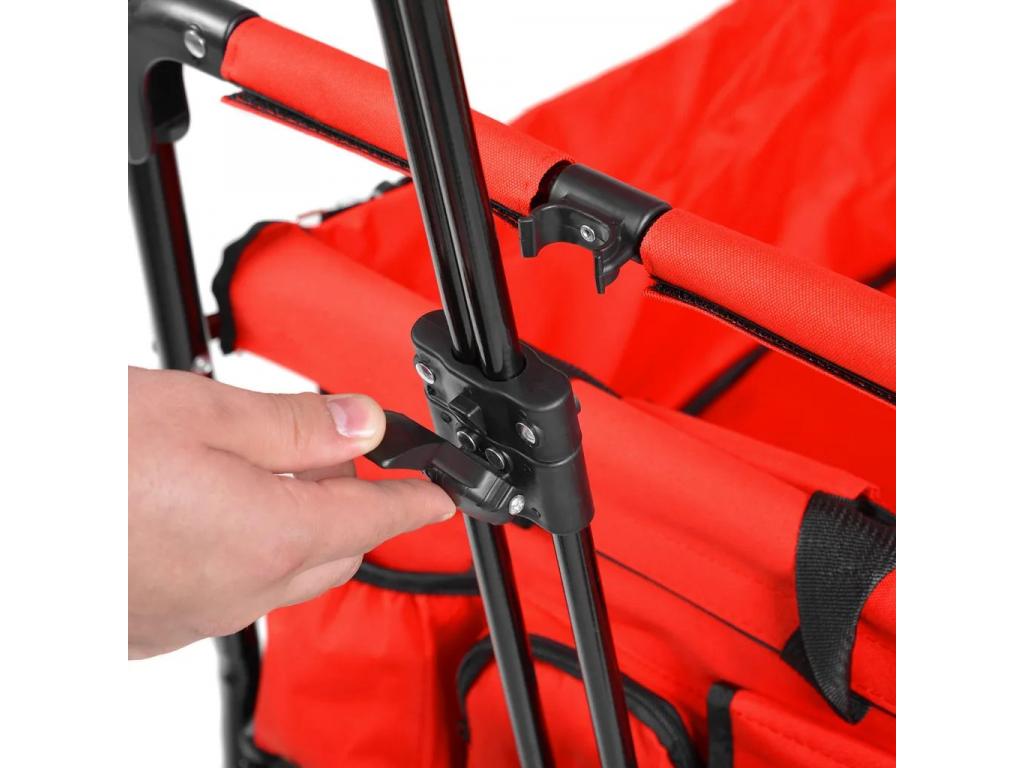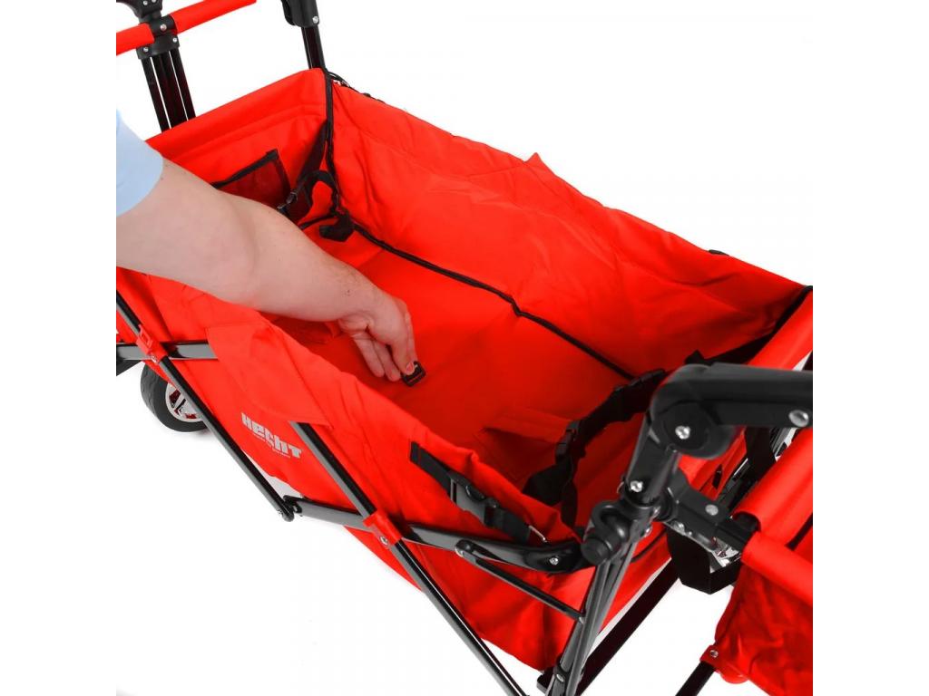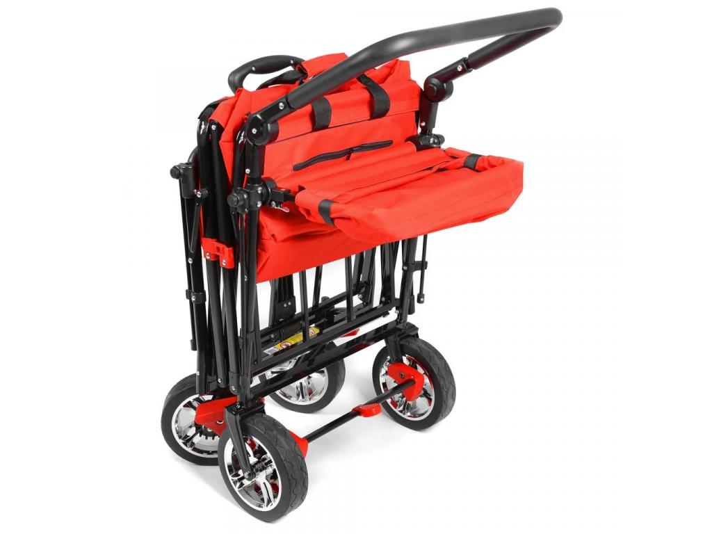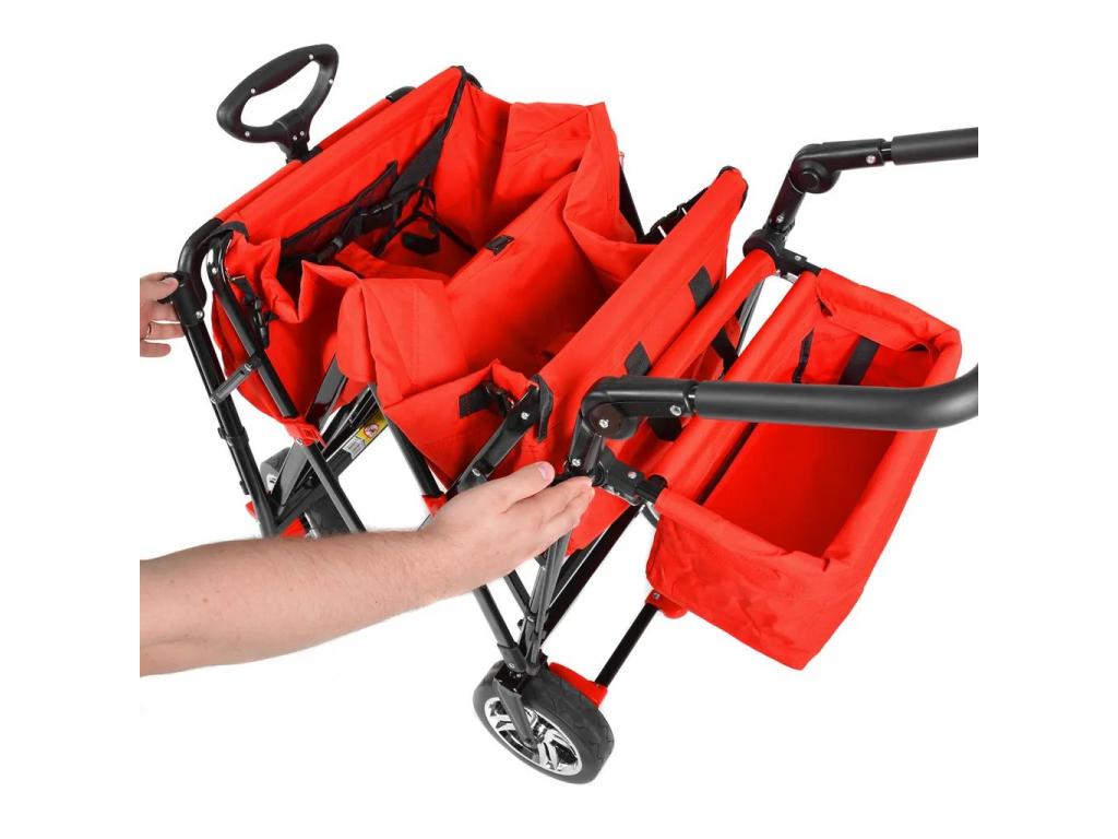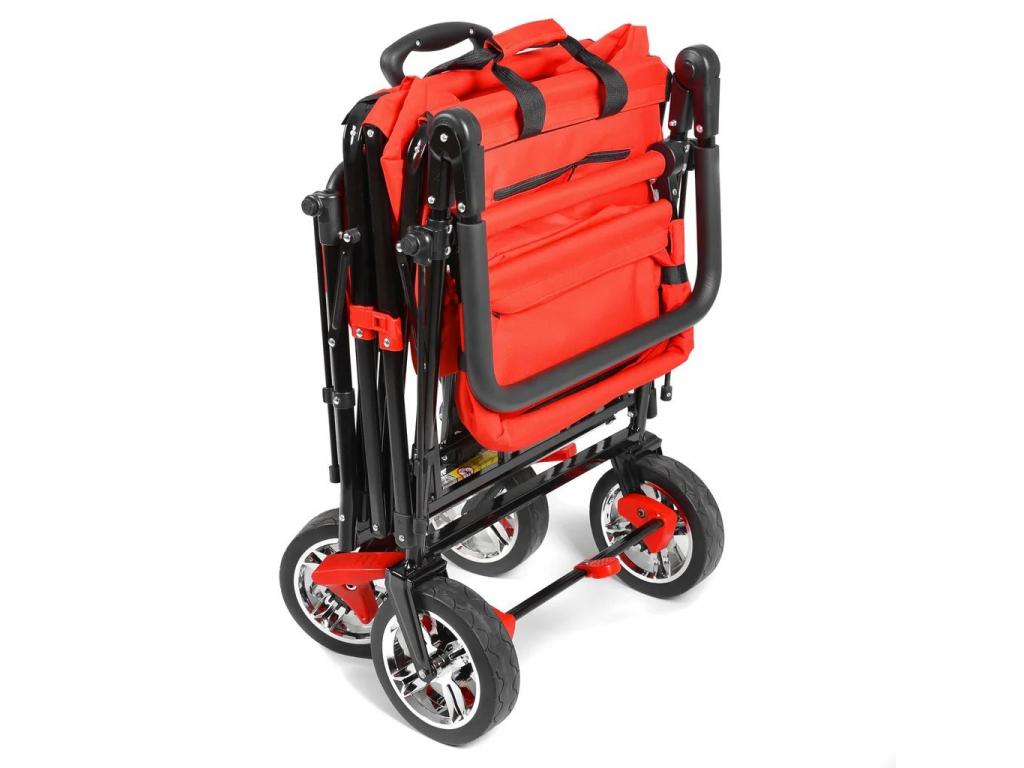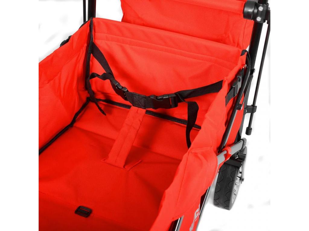 A szabadidős tevékenységekhez használható kézikocsi remek segítőtárs családi kirándulásokhoz, sétákhoz vagy akár bevásárláshoz. A kocsi könnyen összecsukható a könnyű tárolás és szállítás érdekében. A nagy kerekek (5/20 cm) stabilitást és kényelmes vezetést biztosítanak még egyenetlen terepen is.