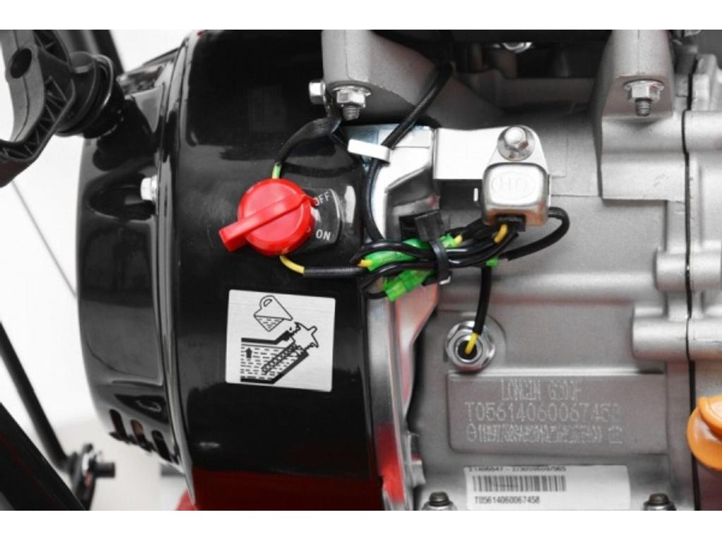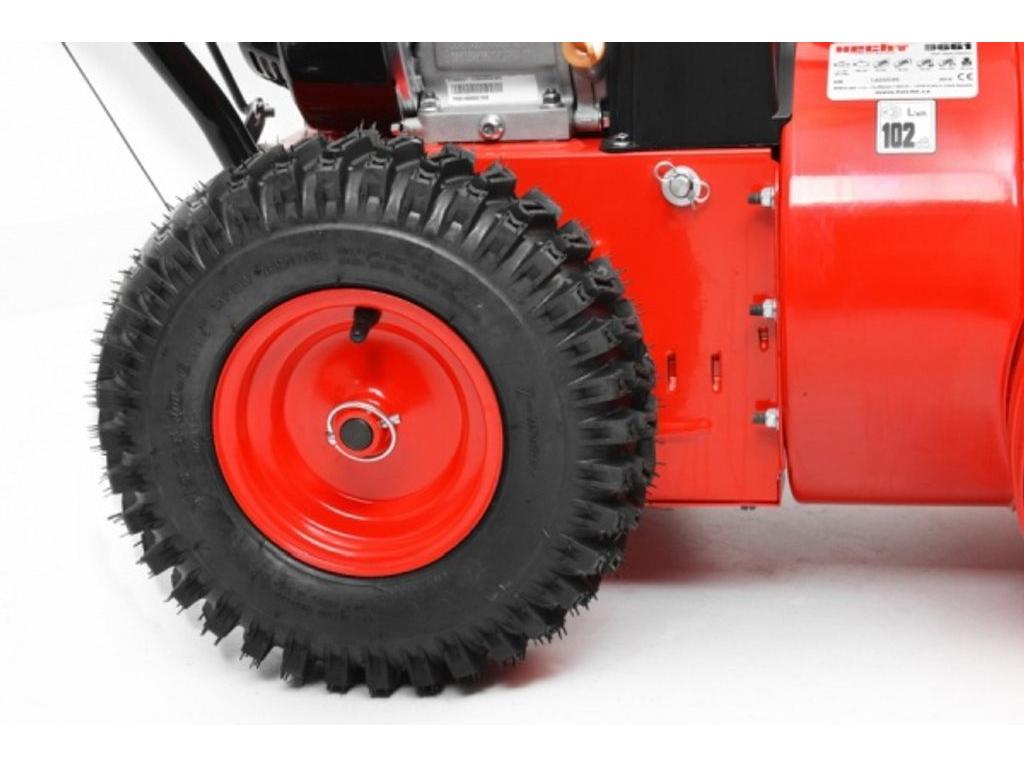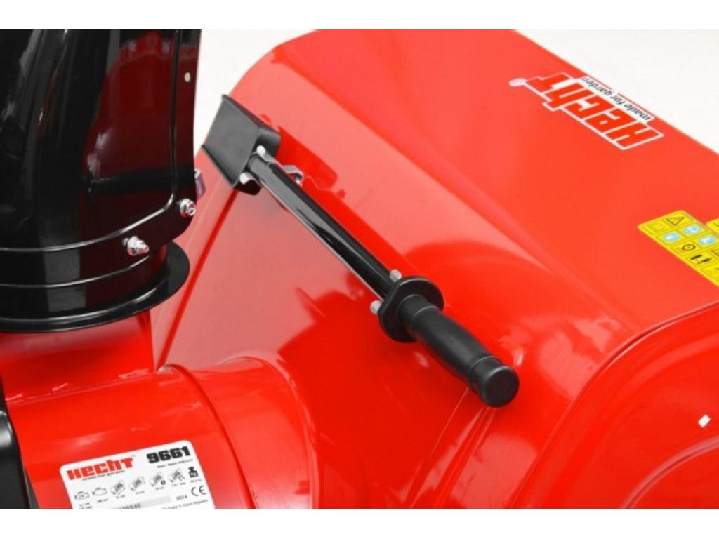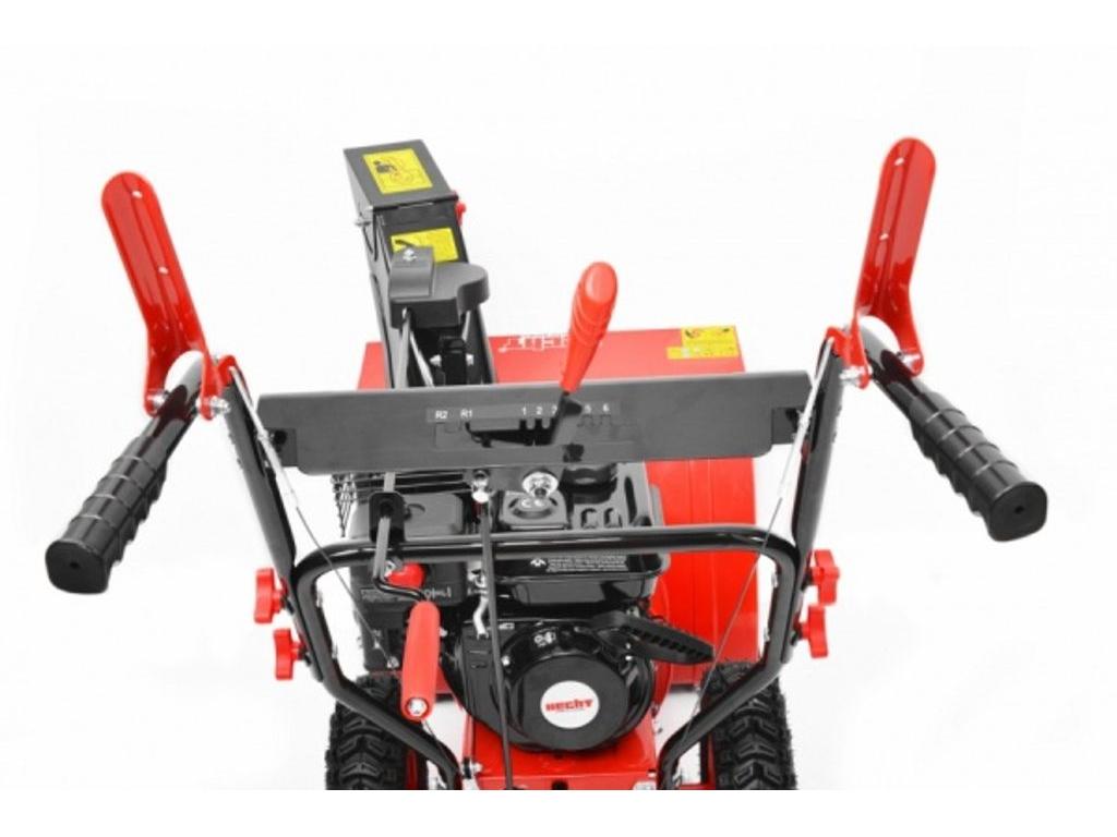 Hecht OHV motor, maximális teljesítmény 6,5 LE. Szélesség (sz) 61 cm (h) 53 cm. Kiadási távolság 13 m. 190 ° kémény beállítása. Súly 80,3 kg.
