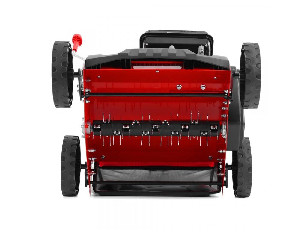 40 cm munkaszélességű gyepszellőztető, 15 acélkéses hengerrel. Erőteljes motor 12 Nm nyomatékkal. Állítható mélységállítás -15 és +15 mm között. Gyűjtőkosár 50 l.