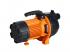 Az EKJ-1202I 1200W-os motorral és öntött vas házzal szerelt önfelszívó kerti jet szivattyú, mely megbízható megoldást kínál tiszta víz szállítására fúrott vagy gyűrűs kutakból, esővíz gyűjtő hordókból vagy tavakból. Fő felhasználási területük a zöld felületek és kertek szórófejes vagy árasztásos öntözése, kerti tavak vagy medencék leeresztésé, de alkalmas akár egy háztartás vízellátásnak biztosítása is. A szivattyú robosztus felépítésű és egyszerűen szállítható a rajta lévő hordozófogónak és könnyű súlyának köszönhetően. A motor túlterhelés elleni védettséggel valamint 1,5m tápkábellel van ellátva. Egyszerűen üzembe helyezhető, a BE/KI kapcsolást fröccsenő víztől védett kapcsoló segíti. A berendezés stabil tömítettségét kerámiabetétes axiális csúszógyűrűs tömítés biztosítja. A csúszógyűrűs tömítés működéséhez szükséges az állandó vízellátás, ezért a rendszer szárazon futását el kell kerülni. A szárazon futás elleni védelemre az elektromágneses kapcsolónk PS01-A vagy PS01-B használatát javasoljuk. A szivattyú szívó és nyomoldalán G1 (30,3mm) belső menetes csatlakozás található. A minél nagyobb vízszállítás elérése érdekében javasoljuk szívó oldalon az 1 (25mm) átmérőjű visszacsapó szeleppel ellátott szívó cső (kiegészítőink kínálatában megtalálható), nyomó oldalon 3 (19mm) belső átmérőjű locsoló cső használatát. A jet szivattyú egyik fő előnye az önfelszívó képesség, így elég beüzemeléskor feltölteni a rendszert és ha a szívóoldal megfelelően zárt, akkor csak ritkán lesz szükség utántöltésre a folyamatos vízoszlop megtartásához. A jet rendszerű szivattyú másik előnye, hogy a vizet relatív mélyről akár 7m ről (kútból, tóból) is fel tudja szívni és azt relatív nagy nyomáson a motor teljesítményétől függően 3,5..4,8bar továbbítja. (Ez a nyomás 35 48m közötti szállítási magasságnak felel meg, és a körülményektől függően alkalmas lehet kb. három öntözőfej üzemeltetéséhez.)