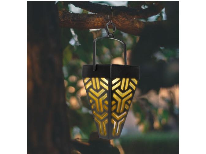 Tegye különlegessé kertjét ezzel a kétfunkciós szolár dekorációval! Használhatja hagyományos módon a leszúrótüske segítségével, de lehetőség van a leszúrótüske eltávolítása utána felakasztani is. A modern hatású, szögletes kivágásokon át kiszűrődő melegfehér fény különleges vizuális élményt nyújt. A leszúró tüske segítségével gyorsan és egyszerűen el tudja helyezni. Amint besötétedik, a lámpa automatikusan bekapcsol, napkeltekor pedig kikapcsol. Napközben a szolárcellák a napenergiát árammá alakítják és az akkumulátorban eltárolják.