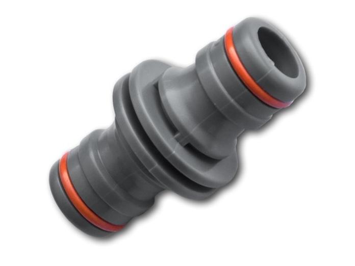 Közbenső csatlakozó 2 gyorscsatlakozóhoz 3/4", POWER JET, WL-2201, WHITE LINE. Két tömlő összekapcsolására szolgáló alkatrész, amely egy tömlőrendszer gyorscsatlakozóval végződik.