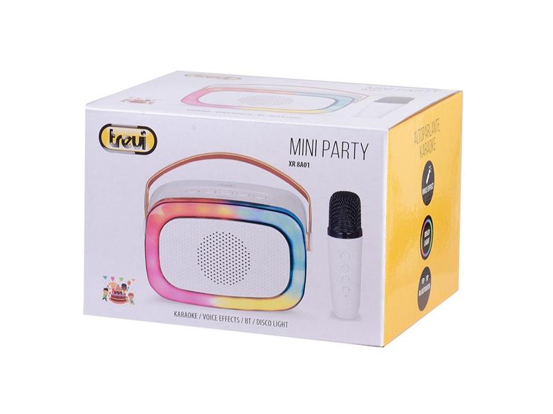A Trevi XR8A01 hordozható fehér gyermek Bluetooth party box leírása: Lépjen be a szórakozás és az energia világába a Trevi XR 8A01 MINI PARTY 10 W-os karaoke alapú hangszóróval, amely egy sokoldalú, hordozható hangszóró, kis méretével, amelyet bárhová magával vihet és használhat.