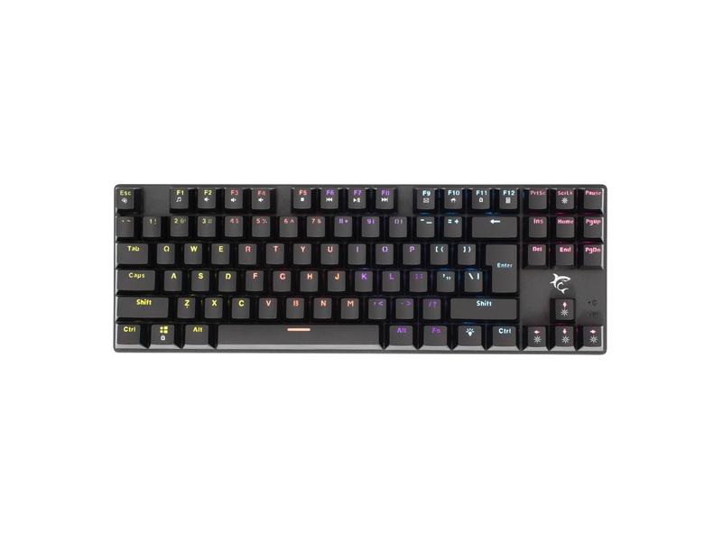 White Sharkk COMMANDOS, GK-2106B/BL-HU fekete mechanikus, magyar gamer billentyűzet 88 gomb, kék switch. Rainbow háttérvilágítás