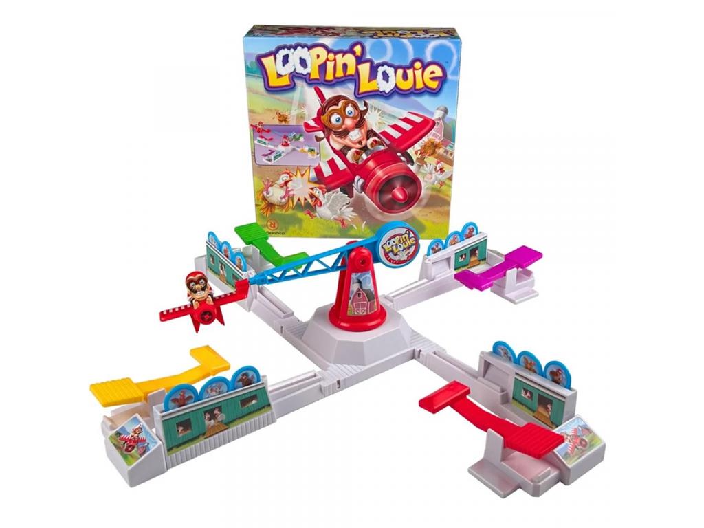 Készülj fel egy szédítő és nevetéssel teli kalandra Louie pilótával, aki újra és újra köröz a csibék fölött! A Loopin Louie társasjáték egy igazán pörgős, vicces és látványos ügyességi játék, amelyben a célod, hogy megvédd a saját csirkéidet a zuhanórepülésben támadó Loopin Louie-tól.