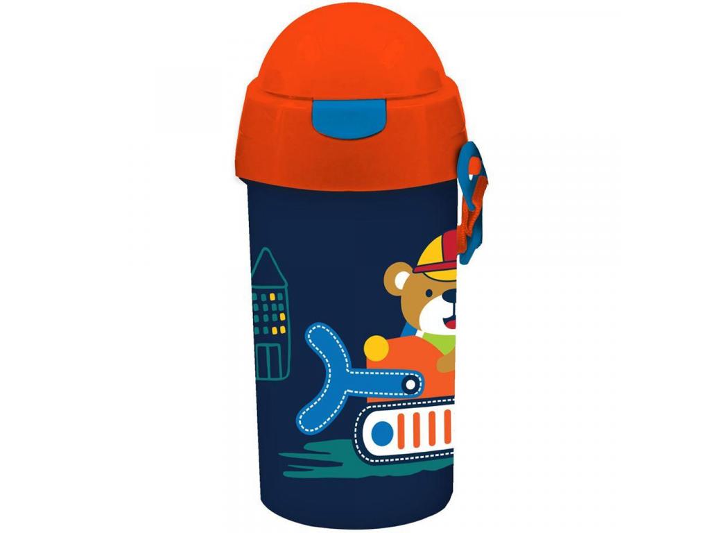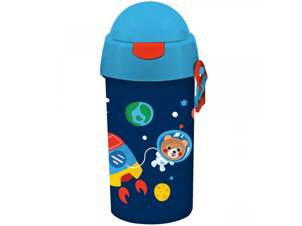 500 ml-es űrtartalmának köszönhetően bőven elég vizet vagy más frissítőt tárol, legyen szó iskoláról, óvodáról, edzésről vagy kirándulásról. Kompakt mérete (9x19 cm) miatt könnyedén elfér az iskolatáska oldalzsebében, és kis kezek számára is kényelmes fogást biztosít. A jól zárható, felhajtható fedél megóvja az ivócső tisztaságát, így higiénikus marad használat közben is.