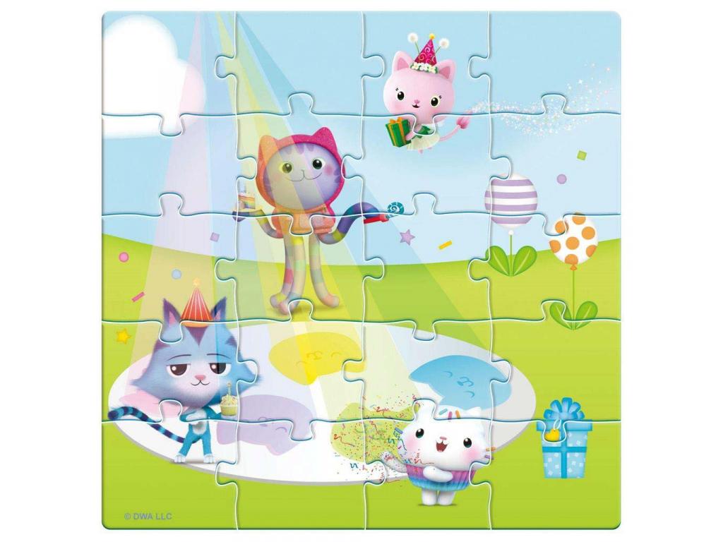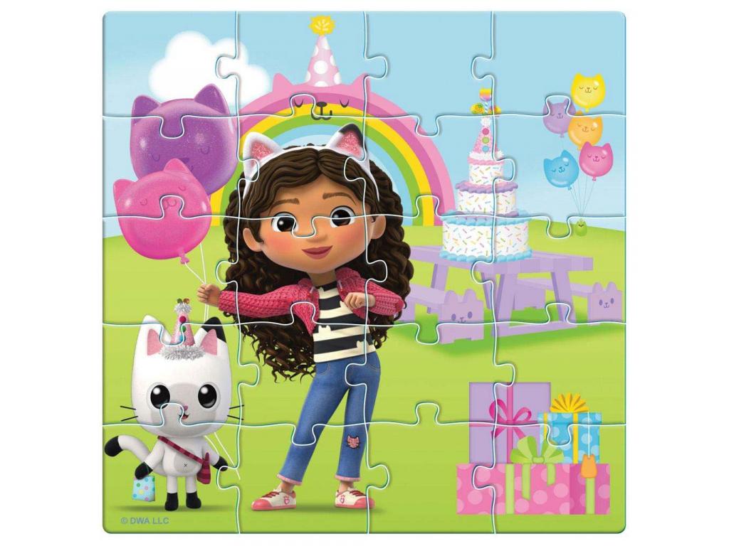 A Gabi babaháza mintás 3x20 darabos mágneses puzzle fantasztikus választás a 3 évesnél idősebb gyermekek számára, akik szeretik a színes, vidám és kreatív játékokat. Ez a különleges kirakó a Netflixen futó népszerű sorozat, a Gabbys Dollhouse világát hozza el a gyerekek játékidejébe. A három különálló, 20 darabból álló mágneses puzzle különböző jeleneteket ábrázol Gabi és barátai izgalmas, színes kalandjaiból.