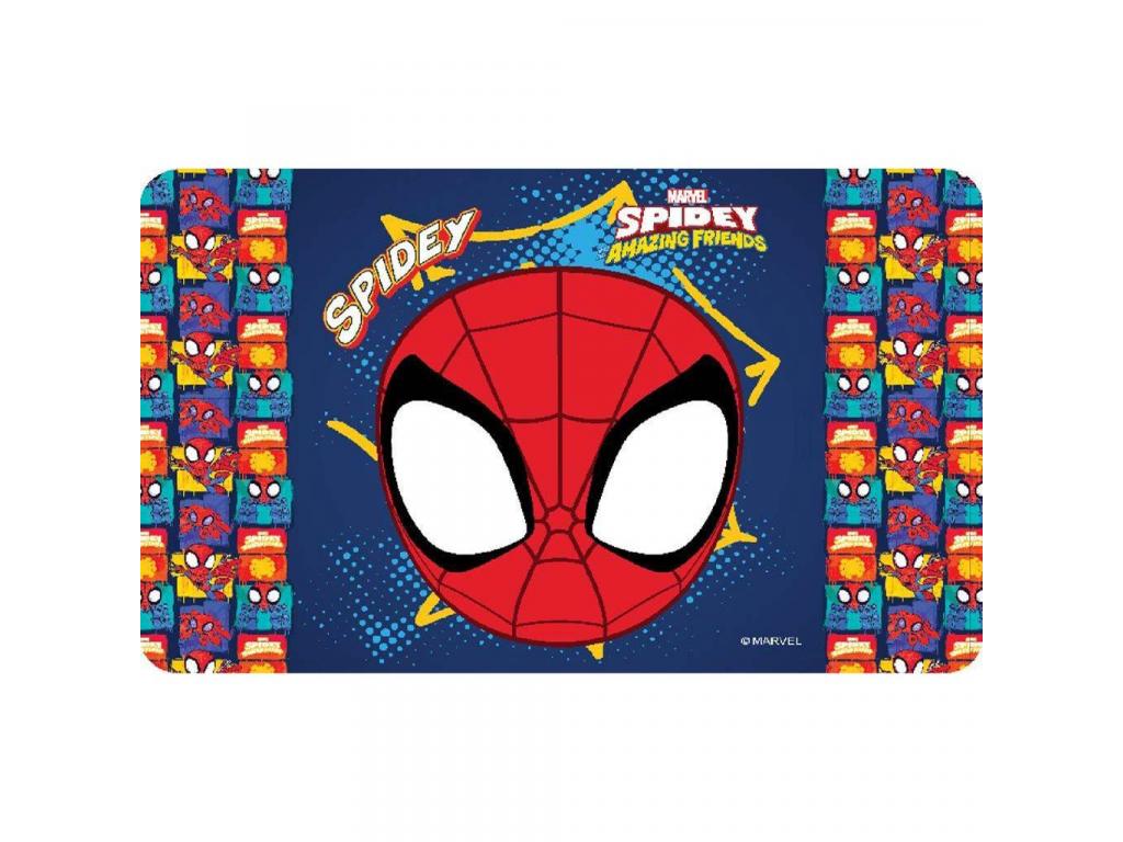 A könyöklő középpontjában Spidey ikonikus arca látható, nagy fehér szemekkel, a háttérben élénk kék alapon sárga grafikai elemekkel. A szélén ismétlődő, színes képregényszerű motívumok teszik még izgalmasabbá a dizájnt. Ez a strapabíró, könnyen tisztítható könyöklő segít abban, hogy a tanulás szórakoztatóbb és inspirálóbb legyen, főleg egy Spidey-rajongó számára.