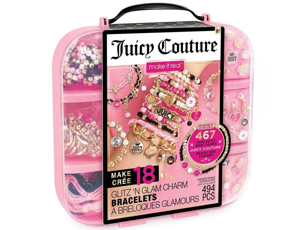 Ha a lányod rajong a stílusos ékszerekért és szeretne saját divatos kiegészítőket készíteni, akkor a Make It Real: Juicy Couture ragyogás és csillogás ékszertáska tökéletes választás lesz számára! Ez az elegáns, márkás készlet lehetővé teszi, hogy akár 18 egyedi karkötőt alkosson meg a híres Juicy Couture stílusában rózsaszín, arany, gyöngy és glam minden mennyiségben!