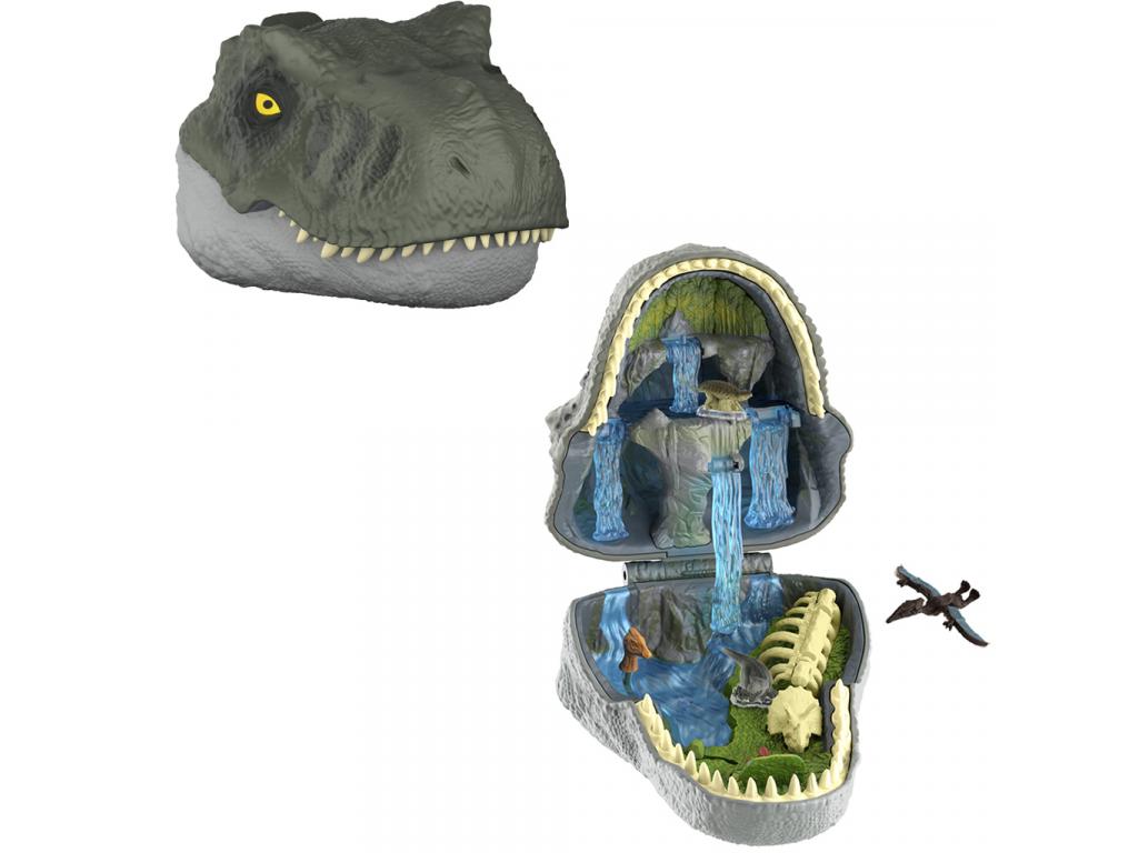 Fedezz fel egy teljes dinoszaurusz kalandvilágot a tenyeredben a Jurassic World: Újjászületés Micro Adventures T-Rex mini játékszettel! Ez a különleges készlet a legendás Tyrannosaurus rex fejformájú tárolóban rejtőzik, és kinyitva egy izgalmas, több szintes őskori helyszín tárul fel vízesésekkel, csontvázakkal és apró dinófigurákkal. Kiváló választás minden kis kalandor számára, aki imádja a dinoszauruszokat és a részletgazdag, fantáziadús játékvilágokat.