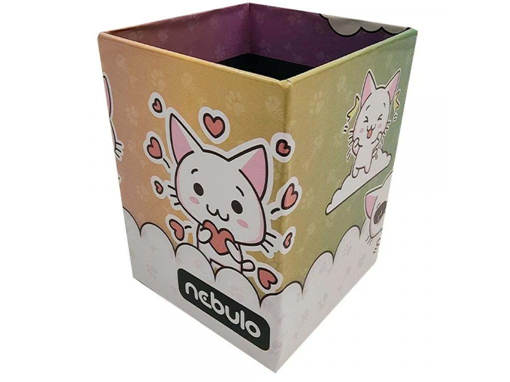 A Nebulo asztali írószertartó Cicás egy vidám és szerethető kiegészítője lehet bármelyik íróasztalnak, legyen szó gyerekszobáról, iskolai tanulósarokról vagy otthoni kreatív kuckóról. A doboz minden oldalát bájos, mosolygós cicák díszítik, akik szívecskéket szórnak a levegőbe garantáltan feldobják a napodat, és mosolyt csalnak gyermeked arcára minden alkalommal, amikor használja.