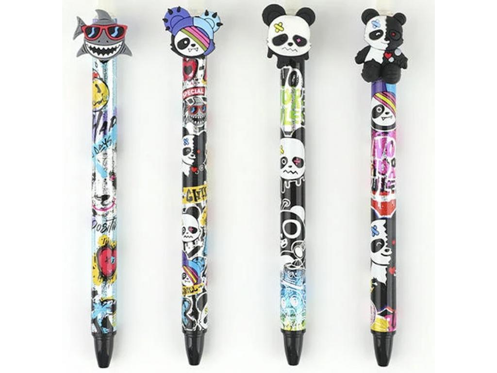 A nyomógombos kivitelnek köszönhetően a toll praktikus és kényelmes: nincs kupak, amit el lehet veszíteni, csak egy kattintás, és máris indulhat az írás. A zselés tinta szépen és egyenletesen fog, így nem maszatol, és a betűk jól olvashatók maradnak. A minták a tolltesten igazán trendik: graffitis, pop-art és vagány panda karakterek díszítik, ami kifejezetten vonzó lehet a stílusos, karakteres gyerekek számára.