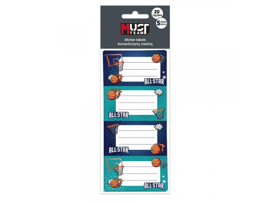 Luna: Must Team Kosárlabda mintás füzetcímke 20db-os csomag