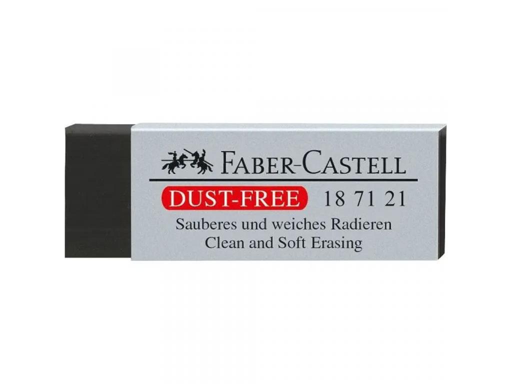 A Faber-Castell Dust-Free nagy méretű, fekete vinyl radír igazi alapdarab minden iskolai tolltartóban vagy otthoni írószerkészletben. Ha olyan radírt keresel gyermekednek, ami hatékonyan, tisztán és morzsalékmentesen tünteti el a grafitot, akkor ez a radír tökéletes választás. Speciális összetételének köszönhetően szinte egyáltalán nem hagy apró radírdarabkákat, hanem egységes, könnyen eltávolítható forgácsban válik le így sokkal tisztább és rendezettebb marad a gyerekek munkaterülete.