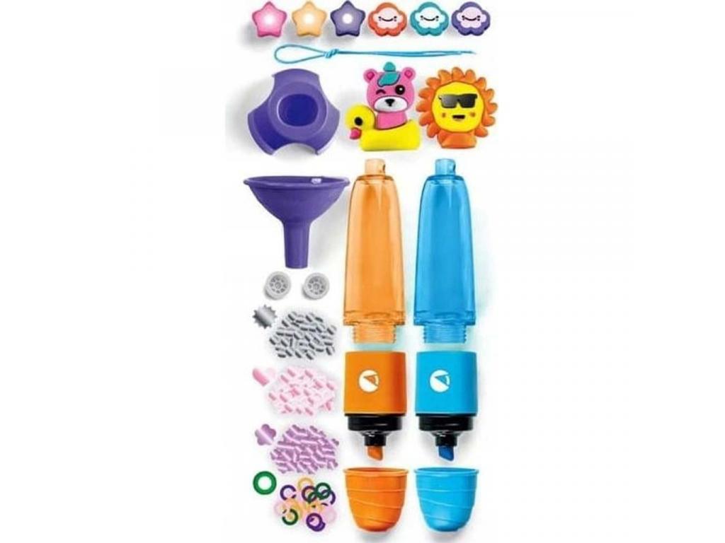 Az Idea! Őrült nyár mini szövegkiemelő készítő szett tökéletes választás, ha egy igazán egyedi és kreatív élményt keresel gyermeked számára. Ez a szett két saját készítésű kiemelő filctoll megalkotására ad lehetőséget, amelyeket a gyerekek színes flitterekkel, gyöngyökkel és mókás nyári figurákkal például napszemüveges napocskával és úszógumis medvével díszíthetnek. A tollak testébe helyezhető díszítőelemekkel a gyerekek szabadon engedhetik fantáziájukat, és egyedi dizájnt hozhatnak létre, amely feldobja az iskolai vagy otthoni írást, rajzolást.