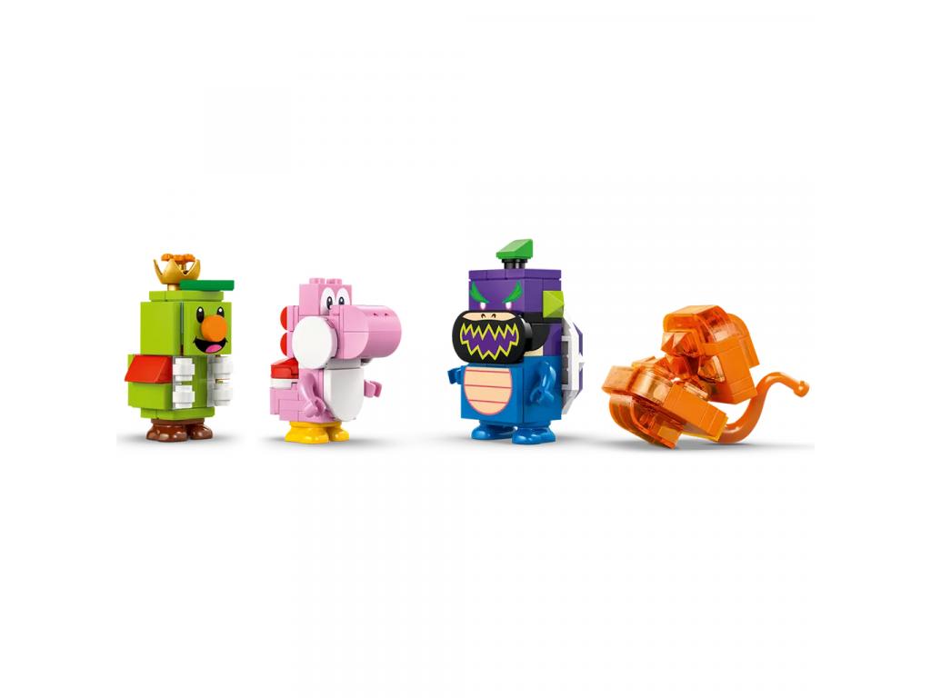 5 Nintendo karakter az izgalmas történetekhez Ez a megépíthető és kiállítható szett tartalmaz egy nagy, megépíthető Castle Bowser játékfigurát, valamint Rózsaszín Yoshi, Fiery Note Piranha, Prince Florian és Wonder Bowser Jr. figurákat