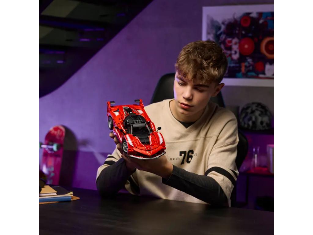 Ferrari autómodellt tartalmazó LEGO szett Ez a 10 éves vagy nagyobb gyerekeknek készült STEM-építőjáték lehetővé teszi, hogy a lányok és fiúk megépítsék a Ferrari FXX K autó autentikus részletekkel teli, valósághű modellváltozatát