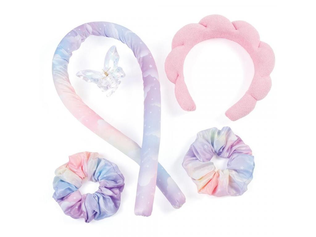 A készlet használata nagyon egyszerű: csak csavard a hajad a puha, pasztellszínű göndörítő rúdra, rögzítsd a pillangó alakú csattal, és már mehetsz is aludni. Reggelre a hajad hullámos, egészséges és csillogó lesz. A szettben található két szivárványos scrunchie és egy imádnivaló rózsaszín, puffos fejpánt is, így nemcsak göndör frizurát készíthetsz, hanem stílusos kiegészítőket is viselhetsz hozzájuk.