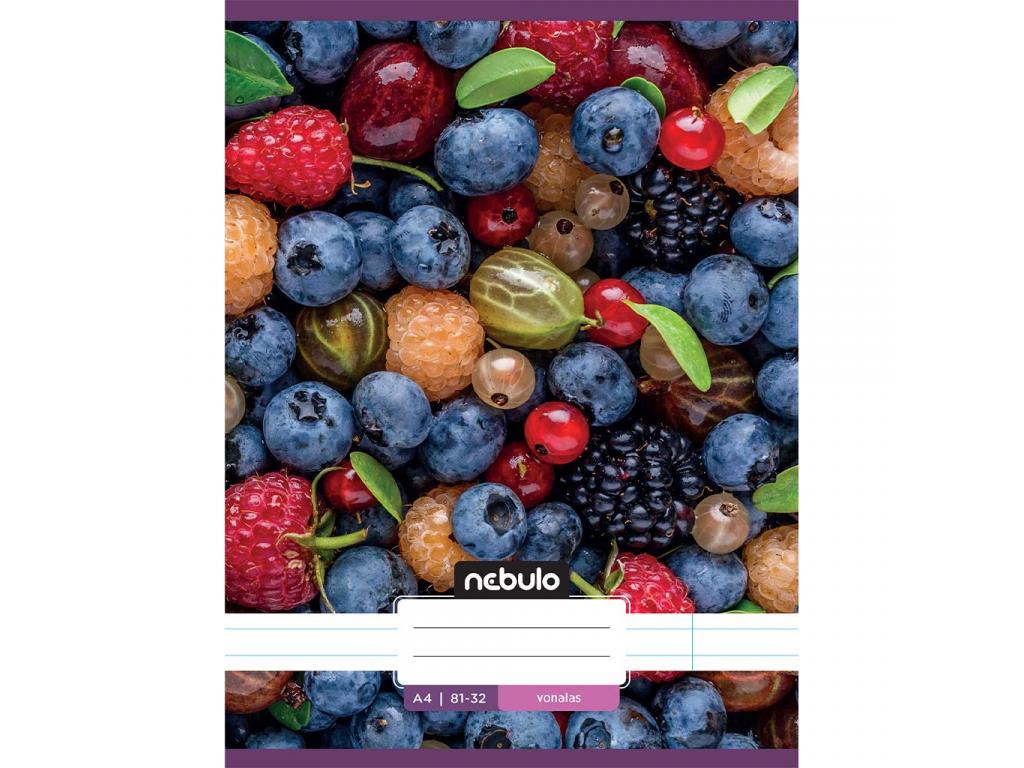 A Nebulo: Tűzött vonalas gyümölcsös mintás füzet 81-32 A/4 leírása: