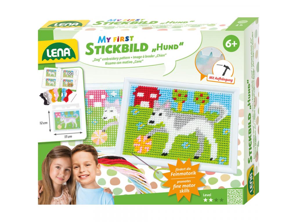 A LENA hímzőkészlet kutyás mintával tökéletes választás a kreatív időtöltést kedvelő gyerekek számára, akik szívesen tanulják meg a kézimunka alapjait játékos formában. A készlet vidám és barátságos kutyás mintája nemcsak szívet melengető, de kellően részletes is ahhoz, hogy valódi sikerélményt nyújtson a kis kézműveseknek.