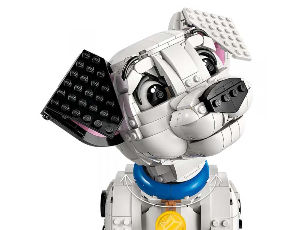 A figura méretei Ez az 1722 elemből álló, felnőtteknek készült, megépíthető LEGO | Disney szett tartalmaz egy dalmatakutyus-figurát, amely 22 cm magas, ha előrehajló testhelyzetbe állítod