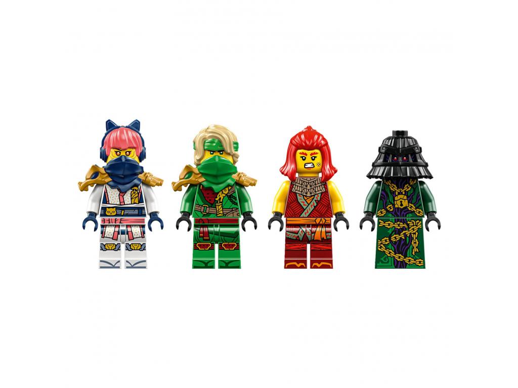 A LEGO NINJAGO választék (külön kapható) készletei és megépíthető akciójátékai robotokat, járműveket és templomokat tartalmaznak, így a rajongók rengeteg nindzsaakciót játszhatnak el. Mindegyik nindzsás játékszett megépíthető a LEGO Builder app segítségével, amely egy könnyű és intuitív építési kalandon kísér végig téged és a gyermekedet. A készlet 381 elemből áll.