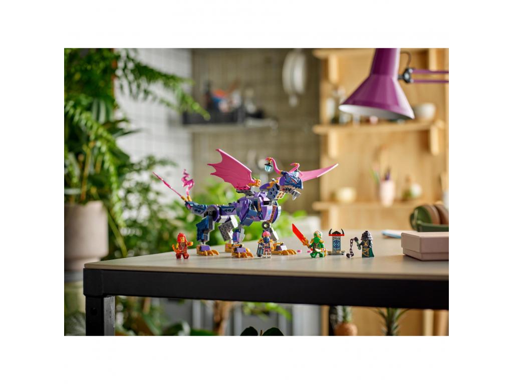 Beállítható sárkányfigura Ennek a hatalmas sárkánymodellnek beállítható a farka, a lába, a szárnya, a feje és az állkapcsa, a hátán 2 minifigura számára van hely, a szárnyai alatt pedig korongvetőket találsz