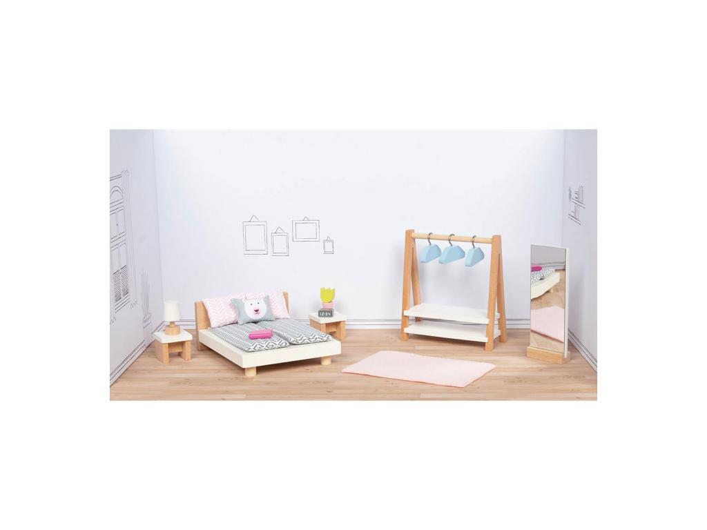 Ez az elegáns, fából készült babaszoba kényelmes menedéket nyújt a babáknak, és modern karaktert kölcsönöz a hálószobájuknak. Akár a kényelmes ágyon pihennek, akár a nagy tükör előtt ápolják magukat, otthon fogják érezni magukat! Meleg fa színeivel, semleges fehérrel és színes akcentussal kombinálva a hálószobabútorok minden babaházba illeszkednek. Jellemzők 18 részes babahálószoba szett Fából és szövetből Méretek: 12,7 cm 3 éves kortól alkalmas